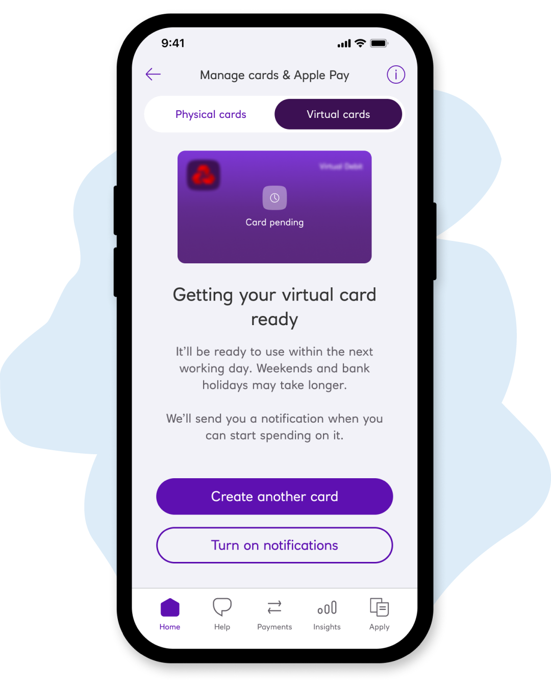 It may take longer on a weekend or bank holiday. We'll notify you once your virtual card is ready to use.